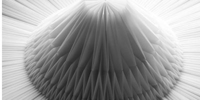Eine Möglichkeit, die Fläche und den Raum zu verbinden, ist die Erschaffung von Raum durch das Brechen und Zusammenfügen einer Fläche. Exemplarisch und in kontemplativer Einfachheit geschieht das beim Falten von Papier. Eine einzige meist homogene Fläche wird derart strukturiert, dass aus ihr dreidimensionale Objekte und Räume entstehen. Dies kann man natürlich auch bei den bekannten Faltformen des traditionellen Origami beobachten.
